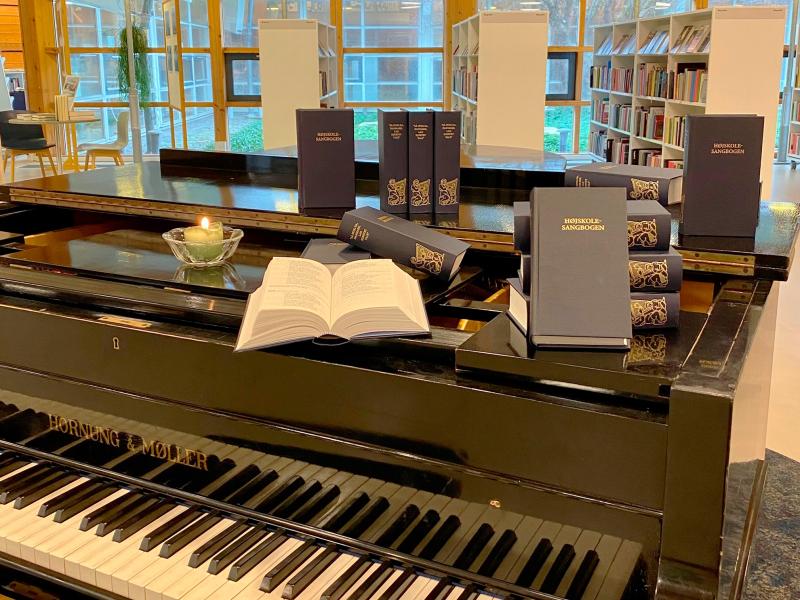 Højskolesangbogen leverer lyrikken, mens Jørn Munksgaard står for musikken, ved flyglet i musikområdet.